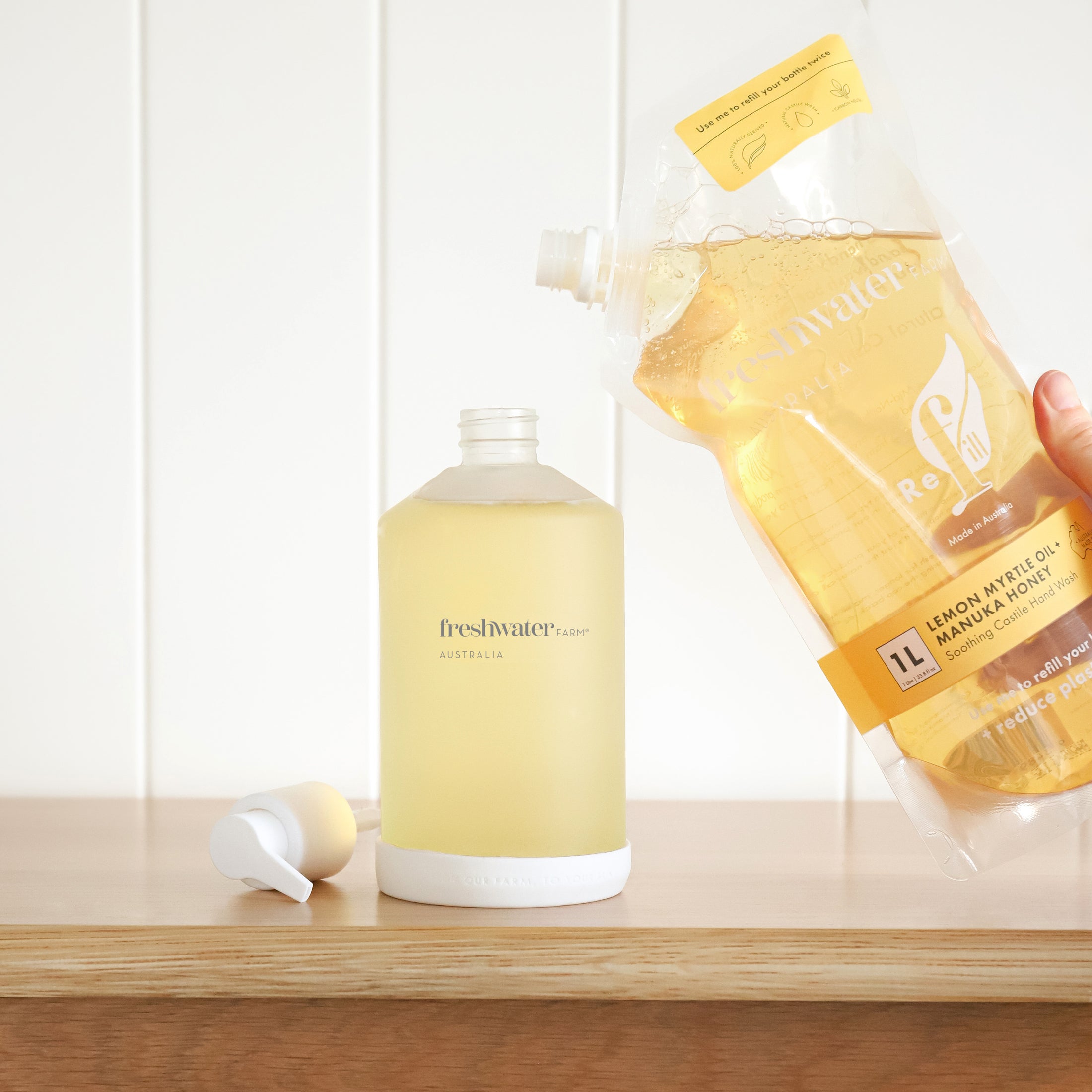 Refill me 2x using the Freshwater Farm Hand Wash 1L Pouch Refill or 10x using the Freshwater Farm 5L refill and reduce your plastic by 80%.